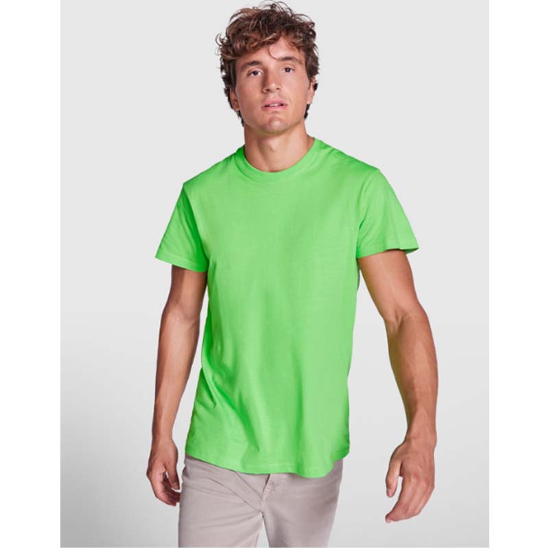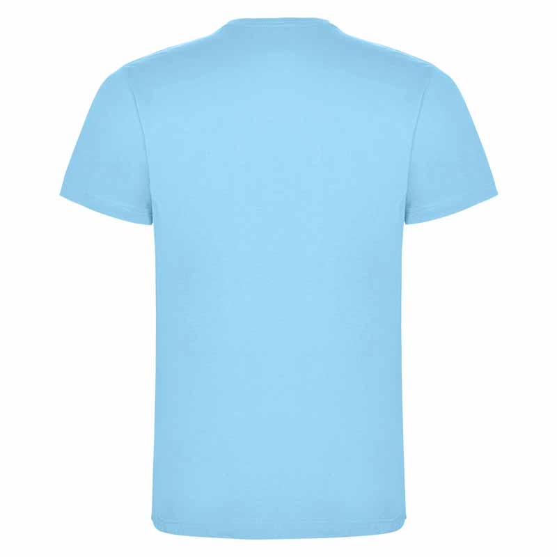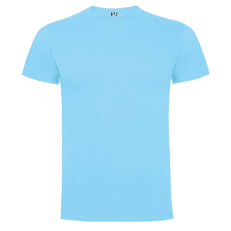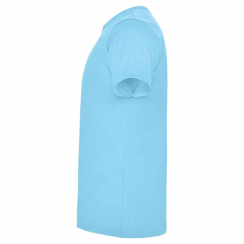 Camiseta de manga corta. Cuello redondo de 4 capas en canalé 1×1 con cubrecosturas de hombro a hombro. Costuras laterales.