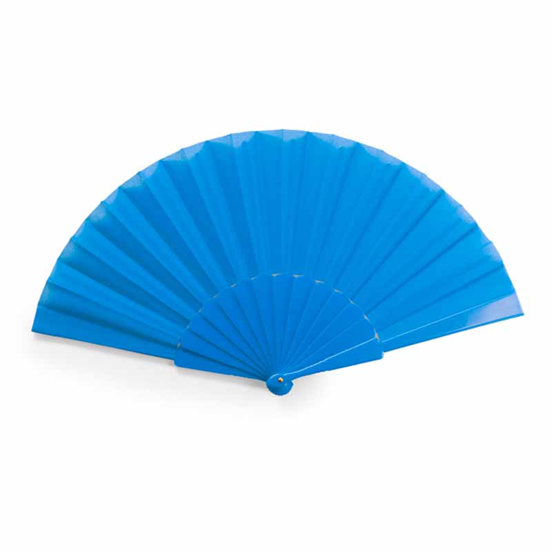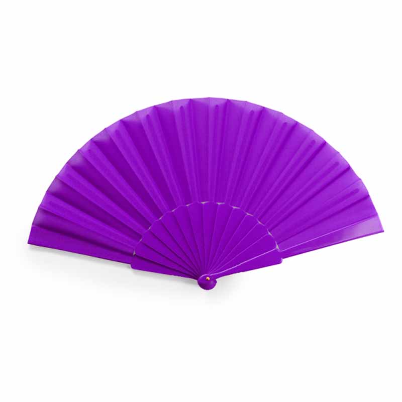 Abanico con varillas de plástico y tela en poliéster. Varios colores puedes personalizar con dtf uv en la varilla.
