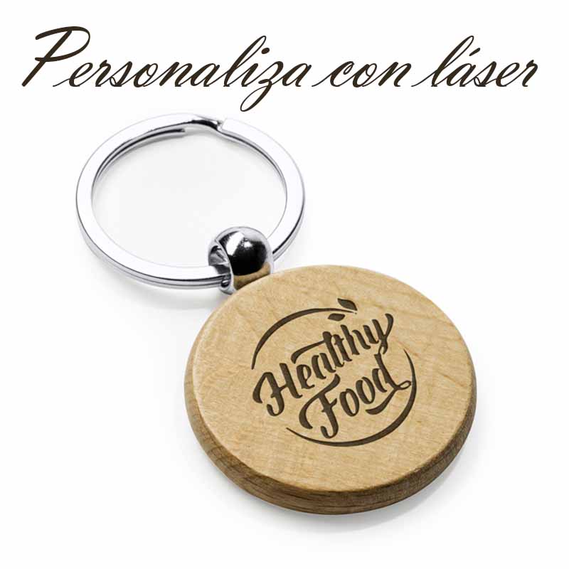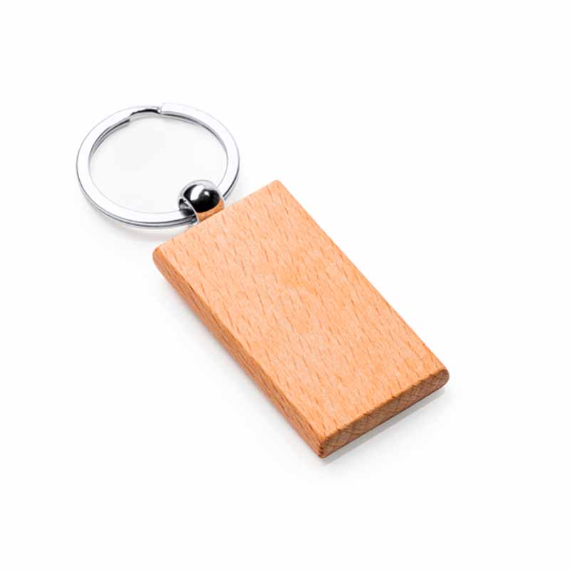 Llavero de madera natural en dos formatos con anilla metálica. Ideal para que lo personalices con láser.